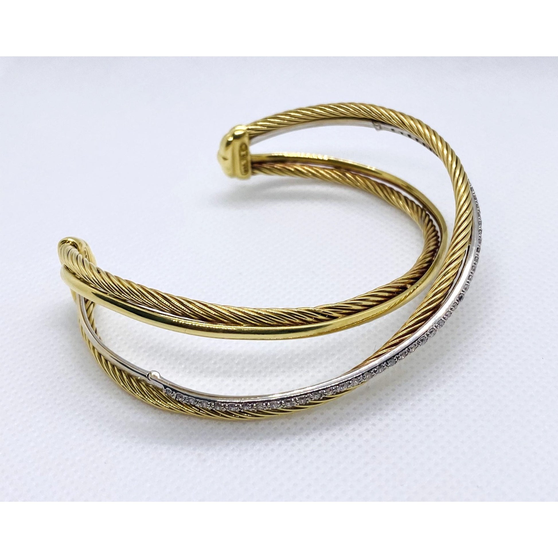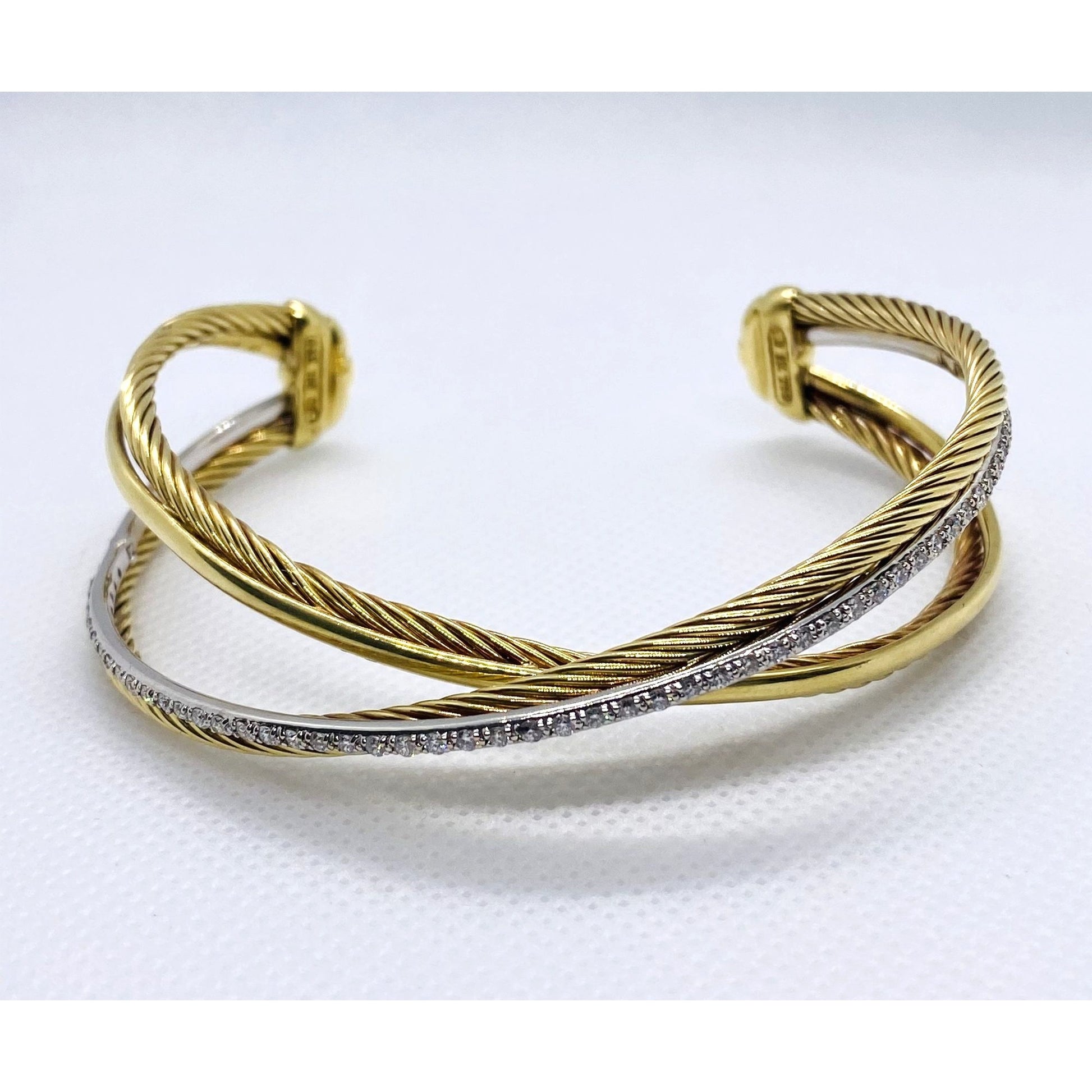 David Yurman 18K 750 Crossover Diamond Cuff Bracelet 7.5"