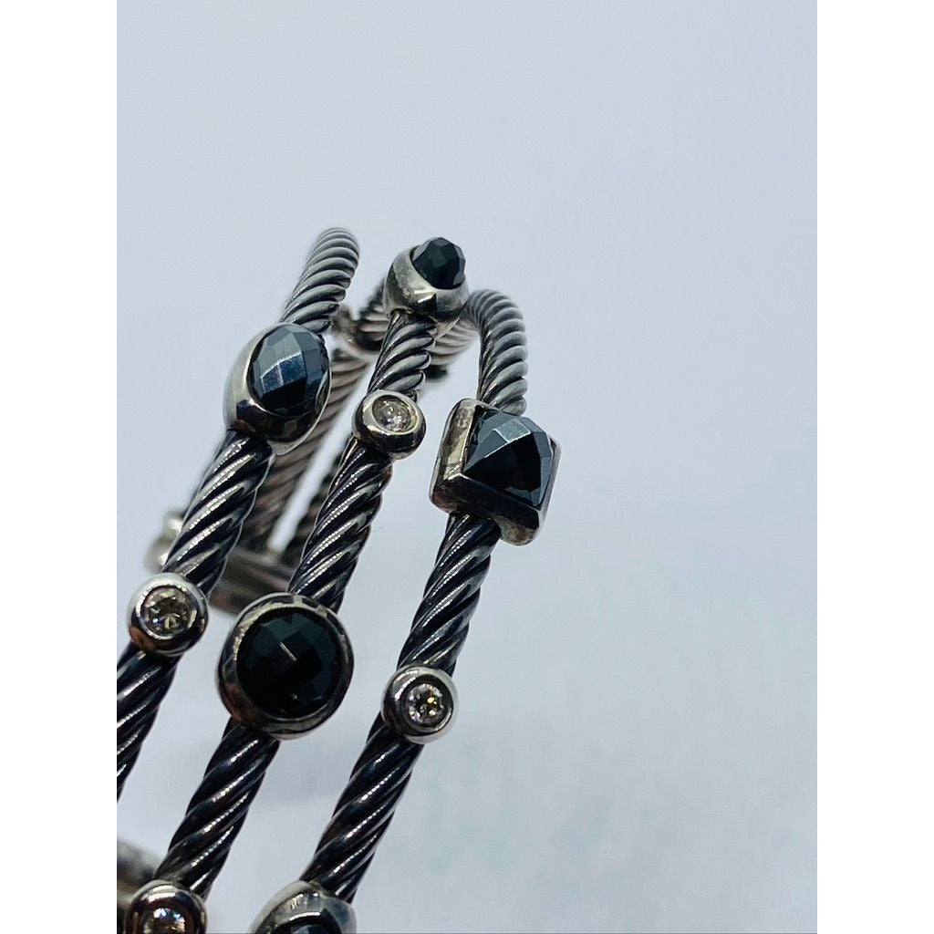David Yurman Cable Sterling Silver Black Onyx Hematite & Diamond Confetti Cuff Bracelet