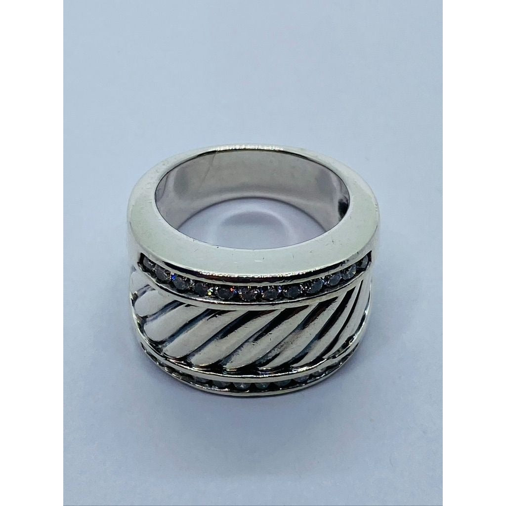 David Yurman Diamond Cigar Band Ring 5.75 Sterling Silver 21mm wide