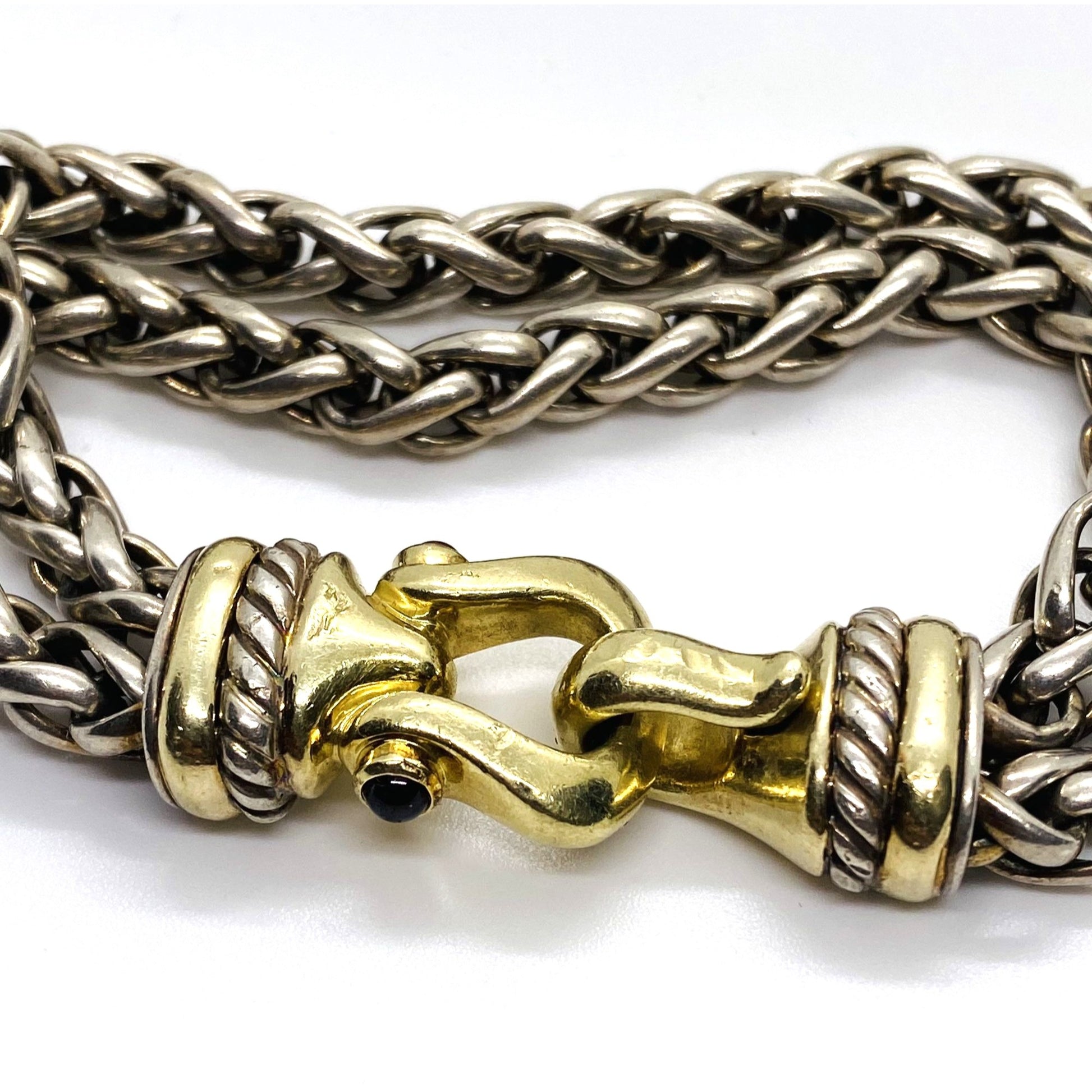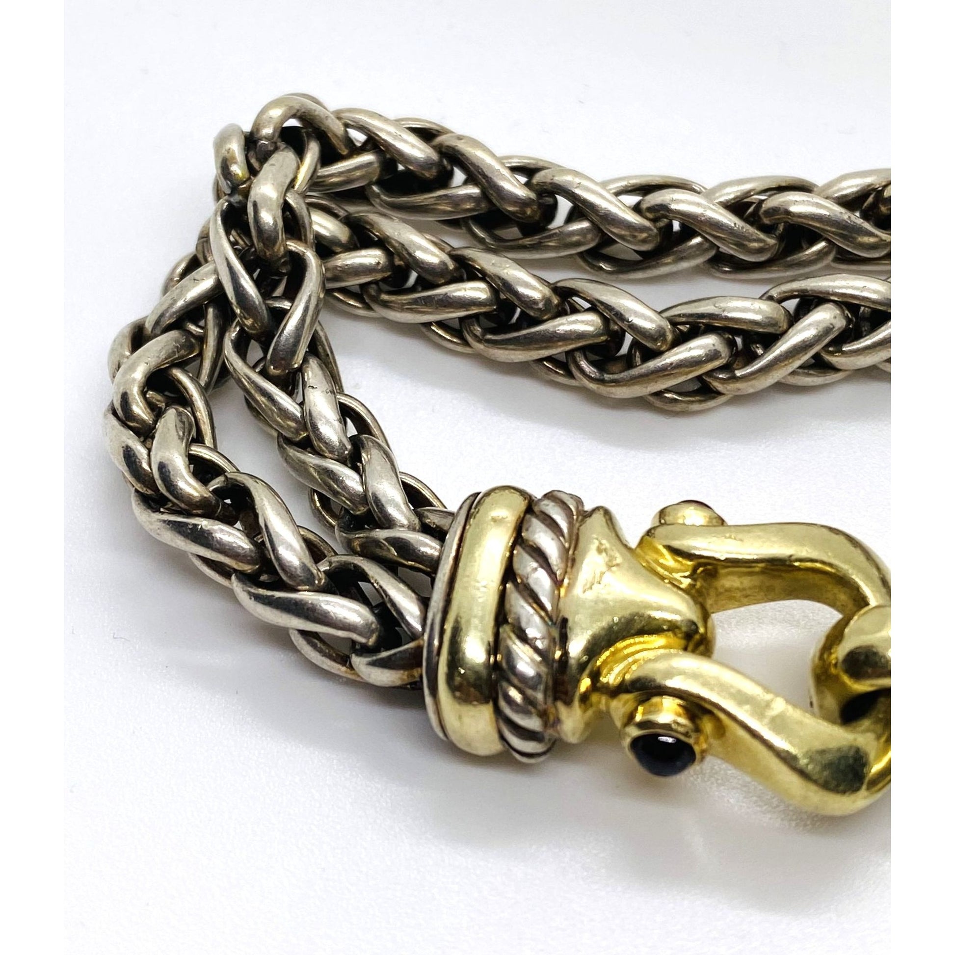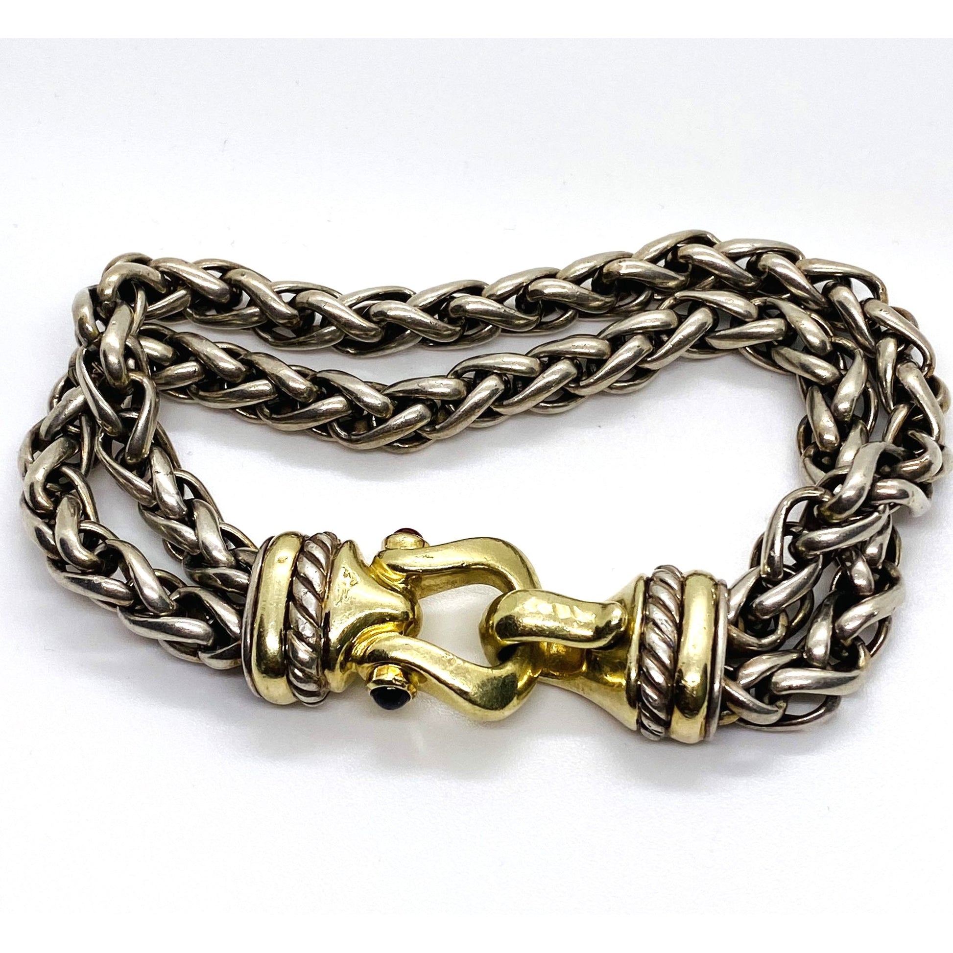 David Yurman Double Wheat Buckle Clasp 925 14k Bracelet 7.75"