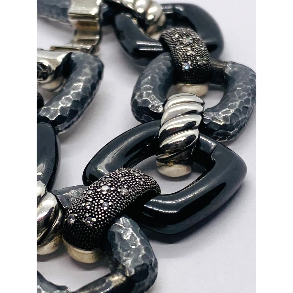 David Yurman Midnight Melange Diamond Link Bracelet in Sterling Silver 30mm Wide