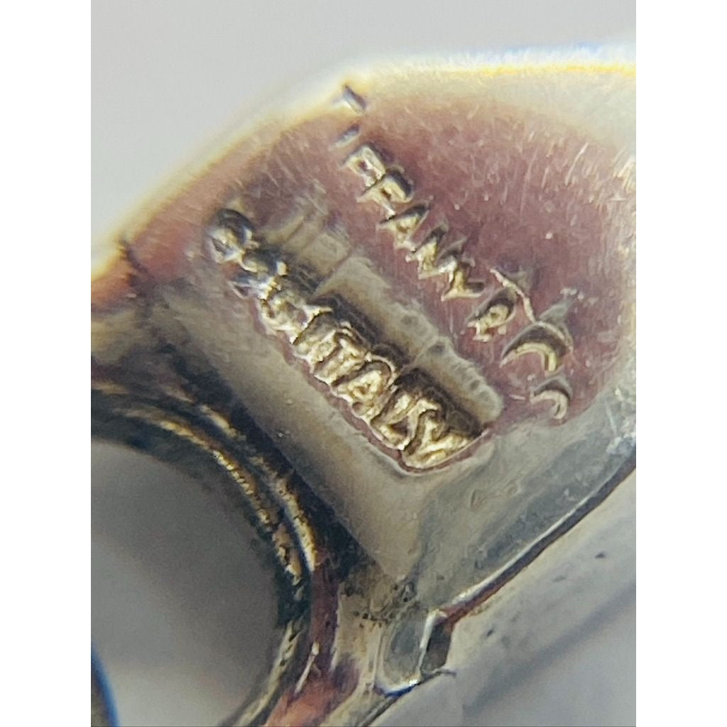 It is crafted in 925 sterling silver with 18kt polished yellow gold accent, the curb link design is in sterling silver with five flat rectangular shape gold accent set every 1 inch apart in a curved bar style. It is fully hallmarked.