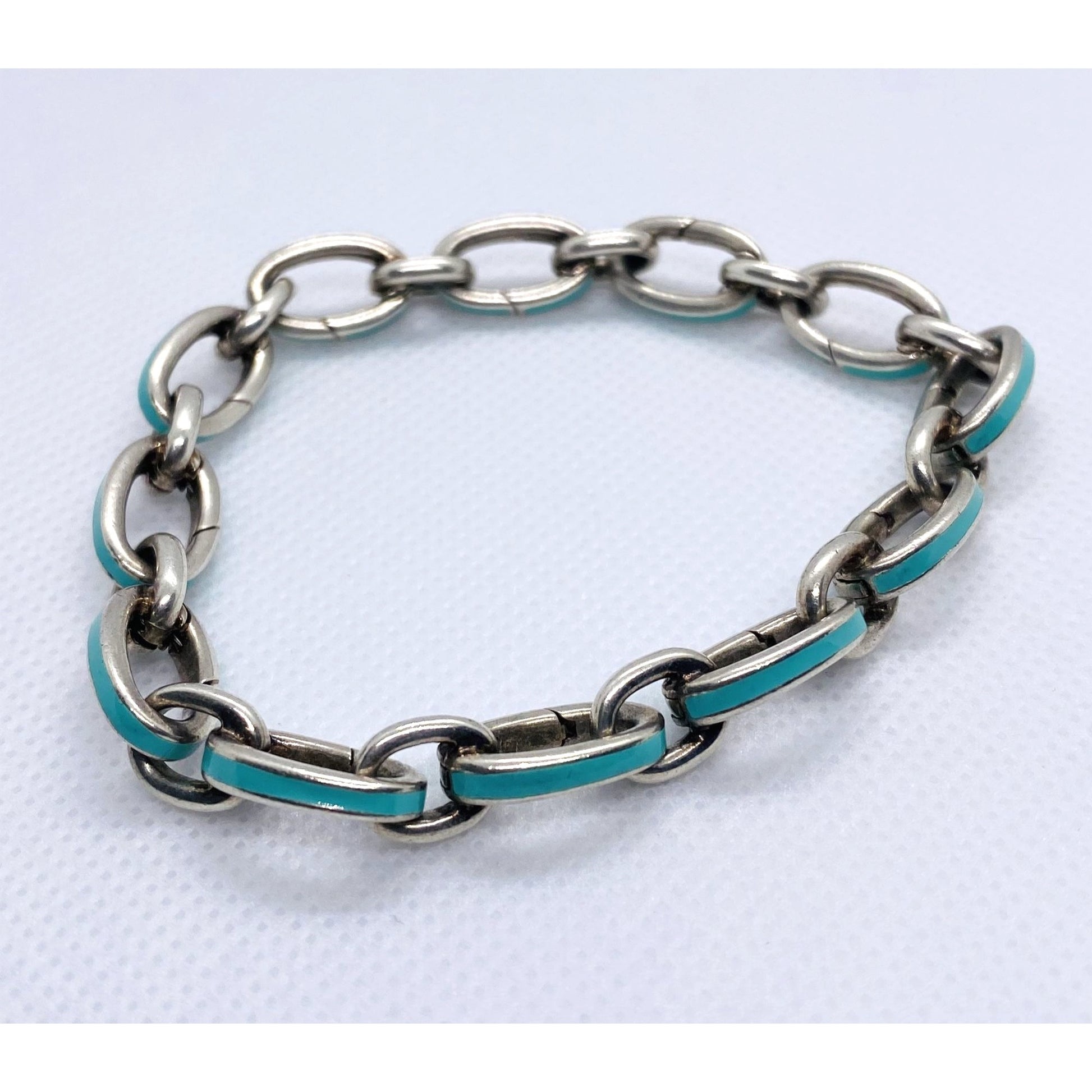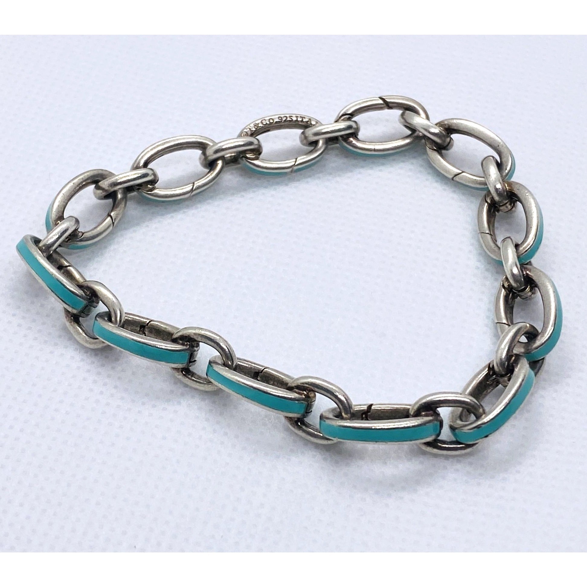Tiffany & Co Blue Enamel Clasping Oval Link Bracelet Sterling Silver 925