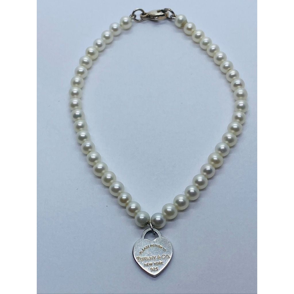 TIFFANY & CO. Return to Tiffany Mini Heart Pearl Bracelet 925 Silver
