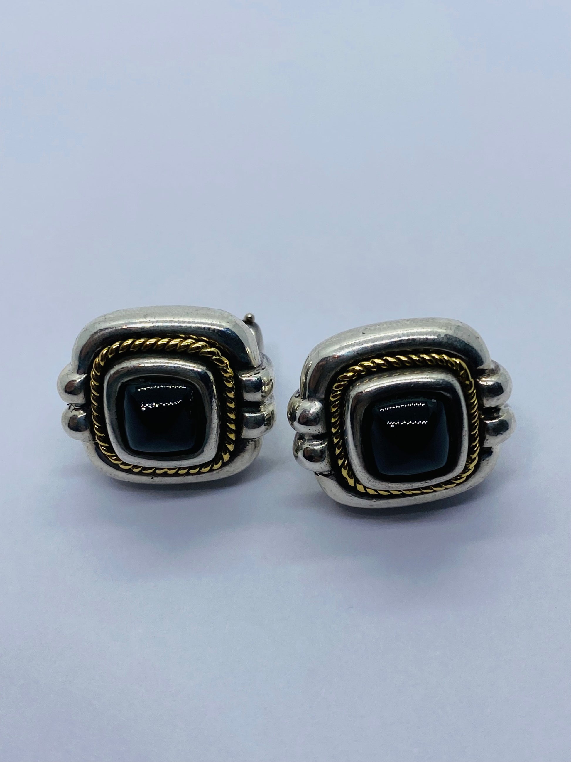 Tiffany & Co Silver Gold Rope Onyx Square Earrings Studs Pierced.