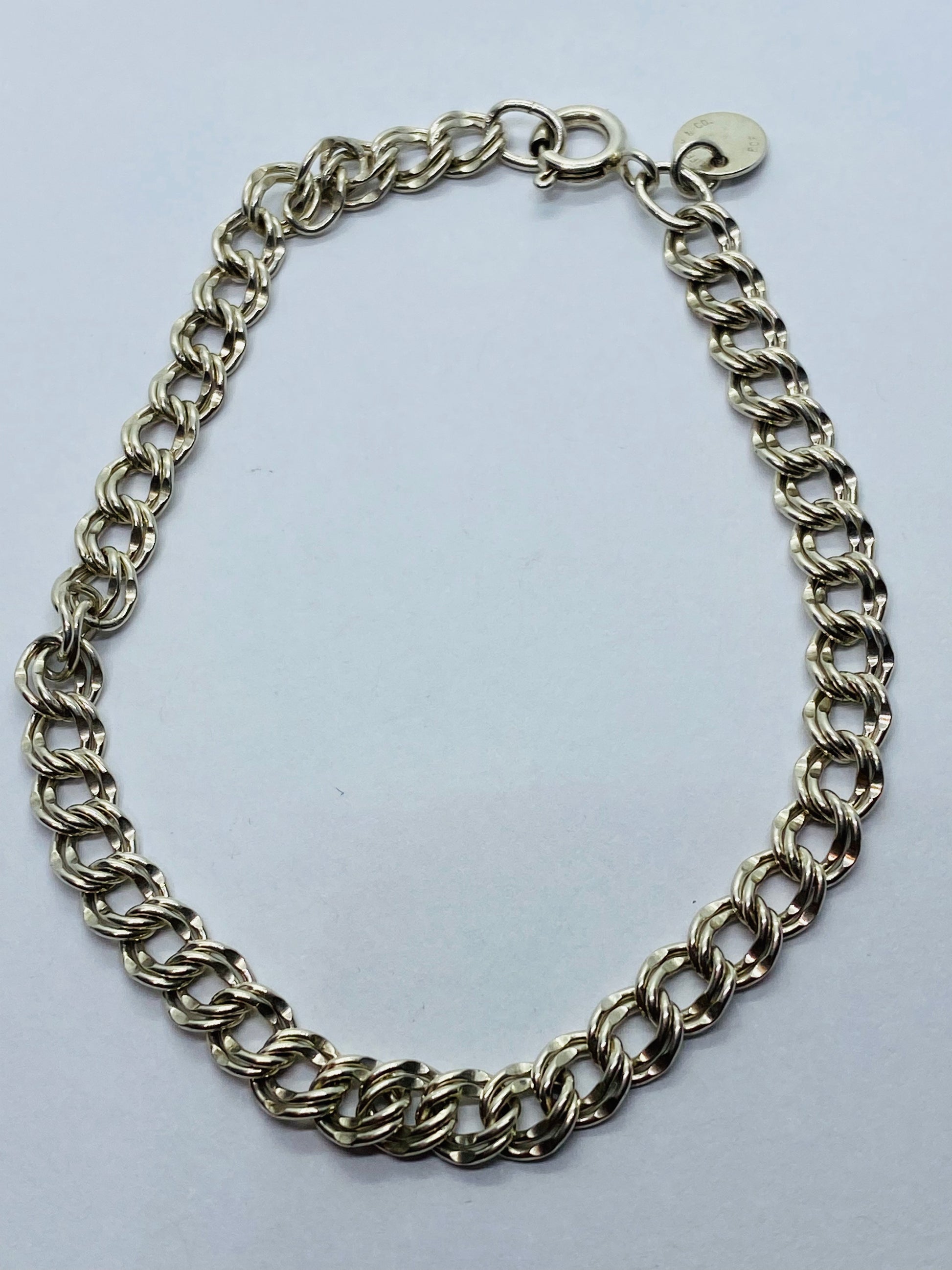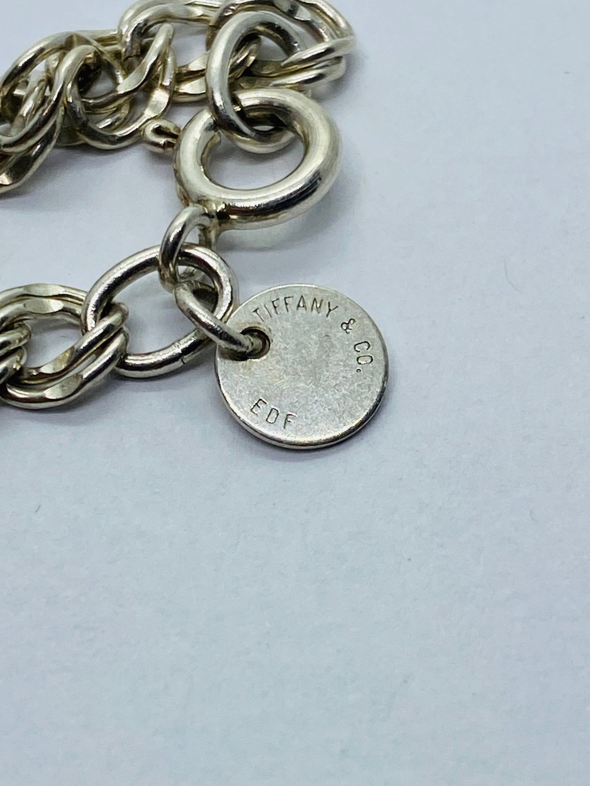 Tiffany & Co. Sterling Silver Double Chain Link Charm Bracelet 925.
